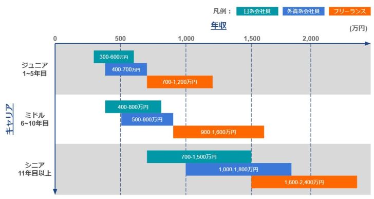 本文将按“日企员工·外企员工·自由职业者”以及“不同职业级别”来比较和解析年收入存在多大差距。