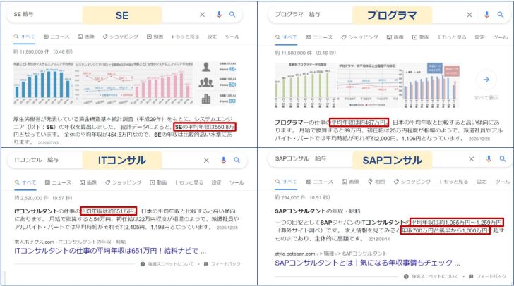 用Google搜索 SE·程序员·IT顾问·SAP顾问的薪酬,会得到如下信息。