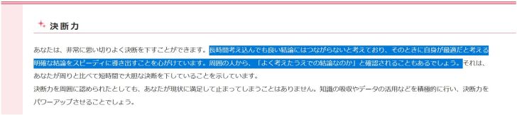 如果自己思考优点,很难说出“我有决断力!”这样的话,但像这样由别人指出来,似乎就能自信地断言了。